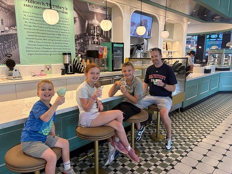 I did try to sneak in some beef jerky and protein bars along the way, but Hershey was a reminder: if you start a trip with three kids by laying down too many rules, you’re setting yourself up for failure.