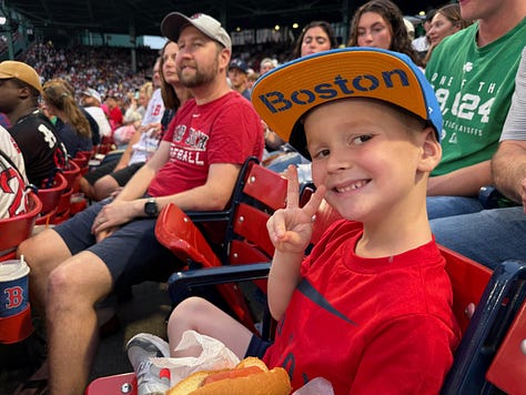 First night, we hustled to Fenway Park. My oldest son—massive Red Sox fan—was practically levitating. I loved watching the game, but even more, I loved watching him watch the game.